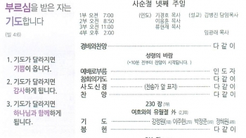 1월 넷째주일 교회소식